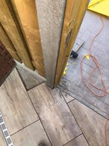 -Grondwerk -Drain stellen en aansluiten -Aanbrengen bestrating Geoceramica 120x30x4cm houtlook -Rondom dichtslijpen -Invoegen Geoceramica 120x30x4cm houtlook